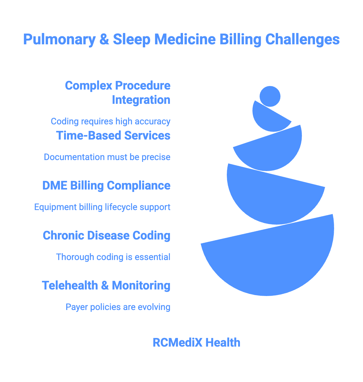 Struggling with the complex billing rules for sleep studies, pulmonary diagnostics, or chronic respiratory care? At RCMediX Health, we specialize in Pulmonary and Sleep Medicine Revenue Cycle Management, delivering billing solutions tailored to your dual-specialty practice. From PFTs to PSGs, our team ensures accurate coding, compliant claims, and maximized reimbursement—so your focus remains on patient care.